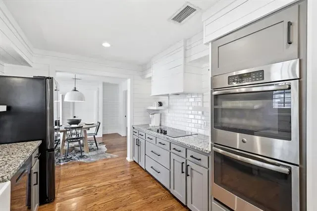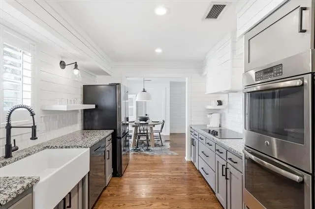 Custom Luxury in Meadow Lakes-Pool, Spa &' Designer Upgrades Throughout! Welcome to this beautifully updated custom-built home in the highly sought-after Meadow Lakes community! Perfectly positioned on a corner lot with a side-entry garage, this 4-bedroom, 2.5-bath home blends timeless character with high-end modern updates. From the moment you arrive, the cedar beam front porch posts, updated exterior paint, manicured landscaping, and black-accent fencing create incredible curb appeal. Inside, you’ll find rich hardwood floors throughout, fresh interior paint, popcorn ceilings removed, and stunning shiplap wood paneling that adds warmth and custom charm. The sunken family room is a true showpiece featuring picture frame paneling, a German schmear brick fireplace, cedar and hewn farmhouse beam mantels, and a built-in wet bar-perfect for entertaining. Plantation shutters add elegance and privacy throughout the home. The fully remodeled kitchen is a designer’s dream with custom range hood, granite countertops, tile backsplash and much more! The primary suite feels like a private retreat with a sunken sleeping area, sitting space with fireplace, and a fully renovated spa-style bath complete with granite countertops, updated tile flooring, modern lighting, LED mirrors, and separate closets. Step outside to your private backyard oasis featuring a gorgeous in-ground gunite pool and spa-perfect for relaxing or hosting summer gatherings. Located close-by to the private lake, Iron Horse Golf Course and just minutes to highways, shopping, downtown Fort Worth, and the new rail stop-this home offers both convenience and a relaxed neighborhood feel close to schools and amenities. This is not just a home-it’s a thoughtfully updated custom retreat ready for its next chapter.