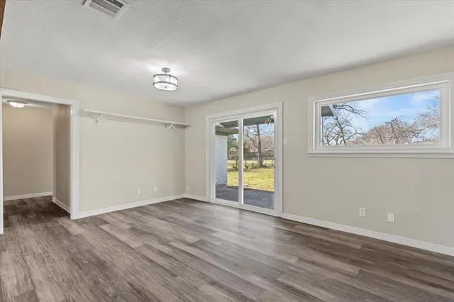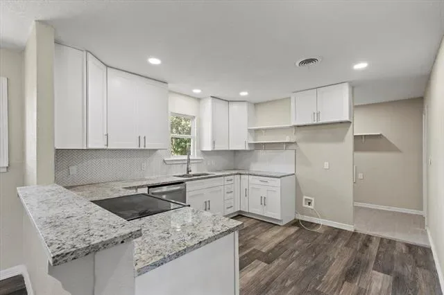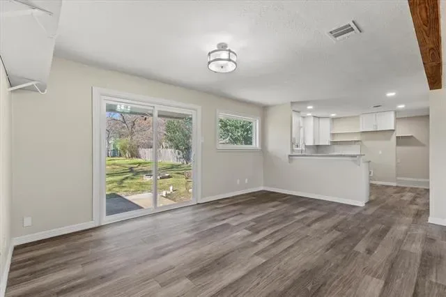 Discover this beautifully renovated single-story ranch nestled in a well-established North Richland Hills neighborhood. A charming front porch invites you into an impressive modern interior featuring fresh paint throughout, a fully renovated kitchen, and completely updated bathrooms. The open-concept floor plan offers seamless sight-lines connecting the living, kitchen, and dining areas, perfect for both everyday living and entertaining. Stunning luxury vinyl plank flooring flows throughout the home, complemented by tile in the bathrooms. The gourmet kitchen is a true highlight, showcasing modern shaker-style cabinetry with soft-close drawers, granite counter-tops, LG stainless steel appliances, and a decorative tile backsplash. The primary bedroom offers a private retreat with an updated ensuite bath and walk-in closet. Both bathrooms have been thoughtfully renovated with modern tile showers, stylish vanities, updated lighting, and contemporary hardware. Step outside to a huge, fully fenced backyard ready for kids, pets, or outdoor entertaining. Major systems including the roof, foundation, HVAC, water heater, and plumbing have all been updated within the last two years, offering peace of mind for years to come.