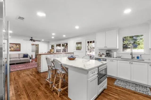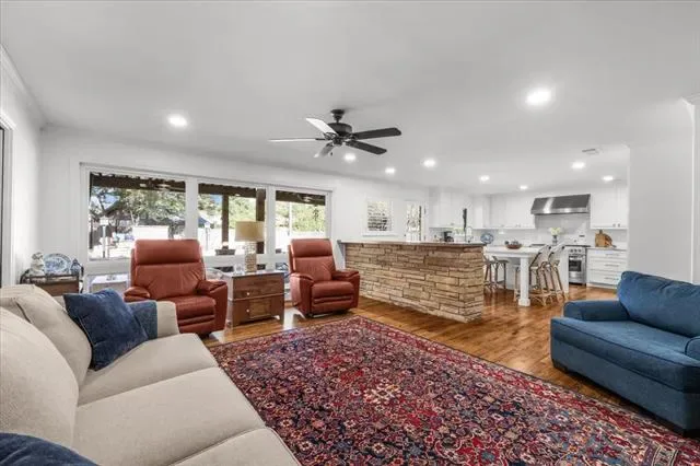 Welcome to this exceptional property in North Richland Hills offering space, luxury, and an entertainer’s dream backyard—all situated on nearly half an acre. This beautifully updated home features a beautiful custom rod iron front door, and 3 oversized bedrooms, all freshly repainted and complete with walk-in closets. Enjoy 2 fully remodeled bathrooms designed with both style and functionality in mind, featuring granite countertops, double sinks, walk-in showers, and an oversized soaking tub. A convenient exterior bathroom access provides seamless entry to the backyard and pool area—perfect for entertaining. Inside, the home boasts hardwood floors throughout, two spacious living areas, and two cozy gas fireplaces. The expansive laundry room includes washer and dryer hookups along with a spacious storage closet for added convenience. The fully renovated kitchen is a showstopper, featuring elegant honed marble countertops, a premium Sub-Zero refrigerator, 6-dual fuel range cooktop with double oven, and a large sink overlooking your private backyard oasis. Step outside to your resort-style retreat complete with a newly renovated pool (February), a 15’ x 30’ arbor with dual ceiling fans, a relaxing deck-sitting area, and a massive stone patio with a built-in grill—truly a grill master’s dream. Mature trees provide shade and privacy, enhancing the serene outdoor experience. Conveniently located with easy access to major freeways, grocery stores, and nearby walking trails, this home offers both accessibility and lifestyle. Situated within the highly regarded Birdville Independent School District, and within walking distance to the elementary, middle, and high schools, this location is ideal for everyday convenience. This one-of-a-kind property combines modern upgrades with timeless charm—don’t miss your chance to call it home!