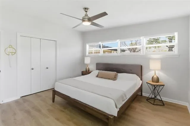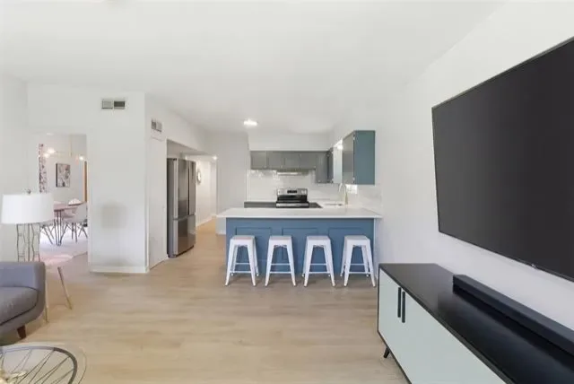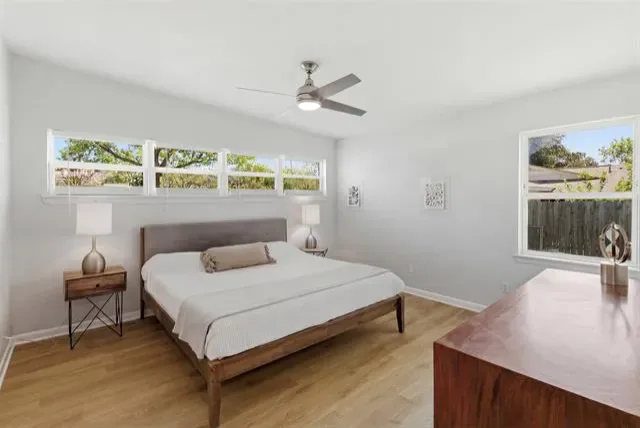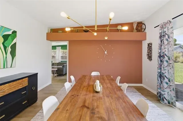 Absolutely stunning mid-century modern home. Full of updates and move-in ready. Appreciate the abundance of natural light and charm upon entering! Conveniently located in a great neighborhood! This beauty features designer chosen interior paint, (2026) updated modern luxury vinyl plank flooring throughout home, light fixtures, hardware, front door, & more! The kitchen features quartz countertops, stainless steel appliances, subway tile backsplash, cabinetry, and a convenient layout that opens to the main living space. Dining room is very inviting with an updated huge sliding door! Living area flows seamlessly with the kitchen & is complemented with a sit down breakfast bar! The Master suite is a dream & features a remodeled Master shower you will never want to leave! Outside, enjoy a generous lot with a wood privacy fence, covered seating area great for entertaining, and a sprinkler system, making maintenance simple and efficient. This home is a standout opportunity for buyers seeking style, comfort, convenience and value.