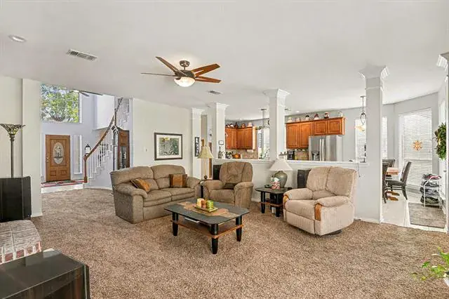 This beautifully maintained 5-bedroom, 4-bath David Weekley Homes in Shady Oaks offers an exceptional layout designed with families in mind. It features a bright, open-concept main level ideal for both everyday living and entertaining, along with a spacious upstairs living area that provides flexible space for a game room, media room, or private retreat. The kitchen is equipped with granite countertops, updated appliances, abundant cabinetry, and generous prep space, seamlessly flowing into the main living and dining areas. The home also features new AC units for maximum comfort and efficiency, and the roof and gutters are just three years old, offering added peace of mind. A detached oversized 3-car garage, connected by a convenient breezeway, provides ample parking and storage. This property stands out for its thoughtful design, quality updates, and prime location near schools, parks, and everyday amenities. Perfectly blending comfort, space, and long-term value.