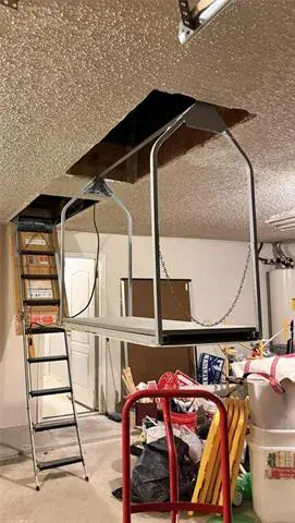 Versa Lift in the garage makes putting away and retrieving holiday decorations from your garage attic entry easy and safer.