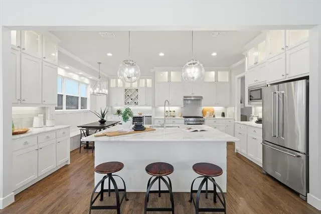 Built-in Features, Built-in Wine Cooler, Cable TV Available, Chandelier, Decorative Lighting, Double Vanity, Eat-in Kitchen, Kitchen Island, Open Floorplan, Smart Home System, Wet Bar