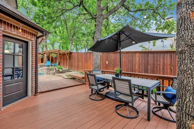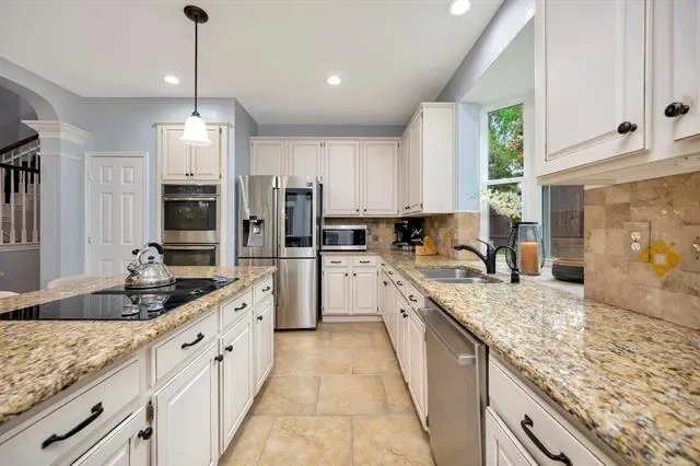 Tucked away on a quiet cul de sac lot, this beautifully maintained home offers the perfect blend of comfort, elegance, and outdoor living. The backyard is truly an oasis, featuring mature trees that provide shade and privacy, an inviting in-ground pool with a waterfall feature, a pergola for relaxing or entertaining, and a spacious deck that creates the ideal setting for gatherings or peaceful evenings at home. Inside, the chef’s kitchen is designed to impress with granite countertops, a large island with cooktop, a breakfast bar, stainless steel appliances including a Bosch dishwasher, a cozy breakfast nook, double islands, and a seamless openness to the living room, all complemented by wonderful views of the backyard retreat. 9ft and 11ft vaulted ceilings enhance the main living areas, creating an open and airy feel, while hardwood and ceramic tile flooring add both warmth and durability throughout.