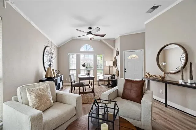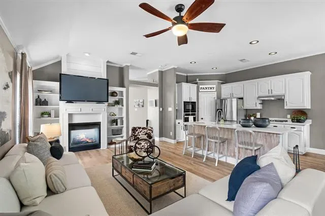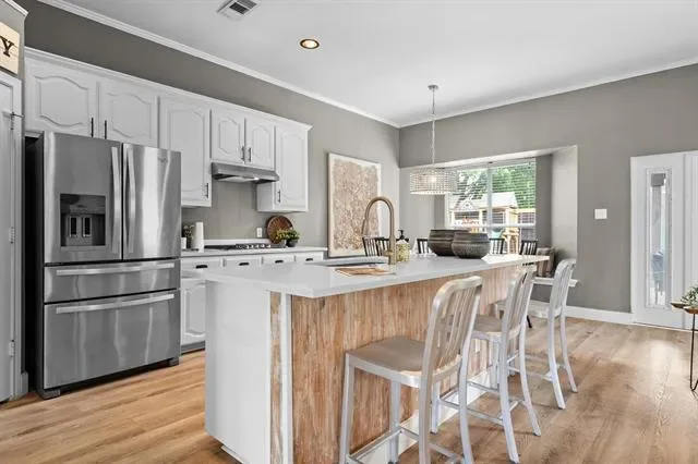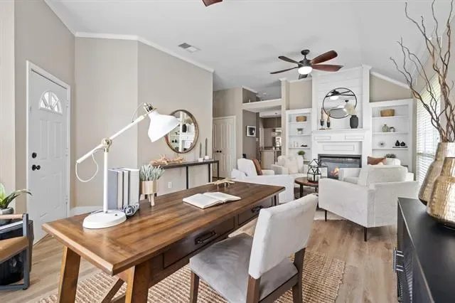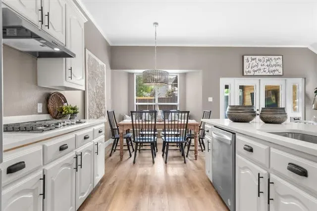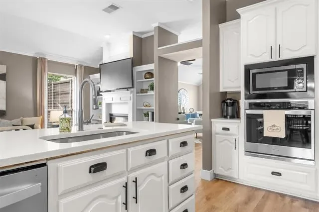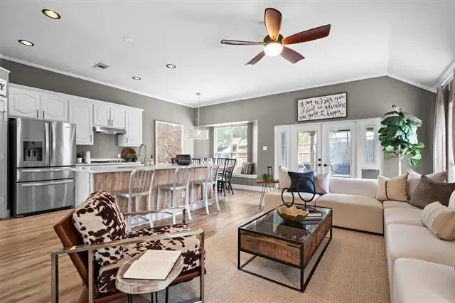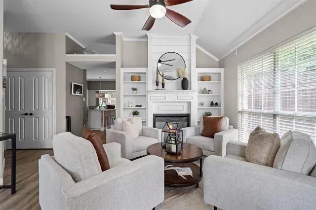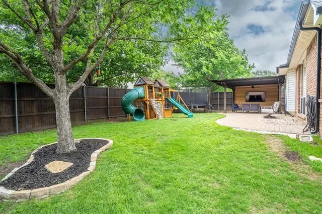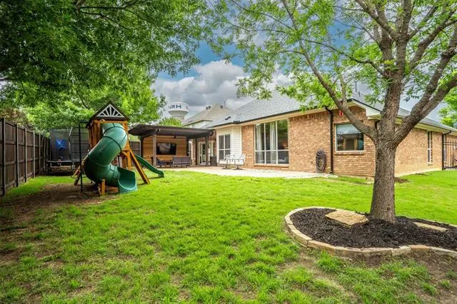 Welcome home! Nestled in desirable North Richland Hills, this charming one-story residence sits proudly on a spacious corner lot. Step inside to a warm and inviting living room filled with character and plenty of room to relax or entertain. A stunning double-sided fireplace creates a cozy separation between the main living area and a secondary living room, offering flexible space for gatherings or quiet evenings in. The kitchen is beautifully updated with new countertops, a large center island, and upgraded appliances, perfect for both everyday living and hosting. Just off the kitchen, the dining area provides a convenient and comfortable place for meals with loved ones and friends. The primary bedroom offers a peaceful retreat, complete with large windows that bring in natural light. The ensuite bathroom has been freshly remodeled and features elegant countertops, dual sinks, and an impressive walk-in shower. In addition, the home includes three generously sized bedrooms and a fully remodeled secondary bathroom, providing plenty of space for loved ones, guests, or a home office. Step outside to enjoy the upgraded back patio, ideal for entertaining or unwinding. The expansive grassy yard offers ample room for pets, play, or outdoor activities. This home blends comfort, style, and functionality, don’t miss your chance to make it yours!