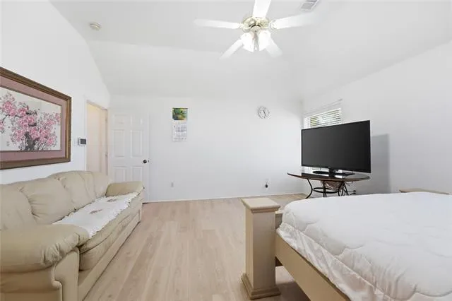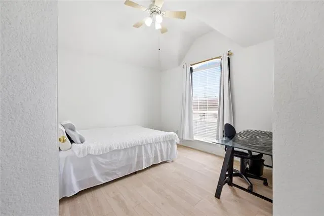 The oversized primary bedroom offers a private retreat with a Texas-sized en-suite bath. Bedrooms 2 and 3 are also generously sized, providing flexibility for family, guests, or a home office.