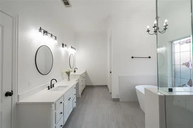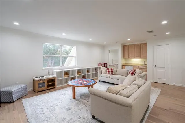 MUST SEE! Come feel at home in this recently renovated estate surrounded by mature trees in a premium lot facing a green belt with easy access to an open field, walking trails that take you to Northfield park and direct sight to neighborhood playground of JB Sandlin Park. Upon entering this exquisite 4 bedroom 4.5 bath estate you are immediately greeted by a grand staircase that leads you to an open living room and or playroom with a wet bar and 2 bedrooms each with their full bath. Stunning white oak wood floors in primary bedroom as well as the main living areas.The grand primary suite with plenty of natural light, private access to the beautiful backyard, double vanity sinks, large shower and a costume walk in closet. Stunning kitchen with built in fridge, stainless steal appliances, large sink with disposal and a built in ice machine that is much needed most of the year! Open floor plan concept makes this home perfect for entertaining and creating family memories. Work in the comfort of your own home with floor to ceiling built in cabinets and a breathtaking view of the front yard and green belt. Large laundry room with plenty of storage, room for extra freezer and or fridge, counter space for folding and pantry and lots of storage. 3 car garage with epoxy floors, built in cabinets and drawers with sink. The large driveway can also accommodate additional parking if needed. According to the floor plans, an additional bedroom can be added on the second floor. Spring front and back yard maintenance has been completed last week of February with fresh mulch in flower beds, weeds pulled and shrubs trimmed. MOVE IN READY!