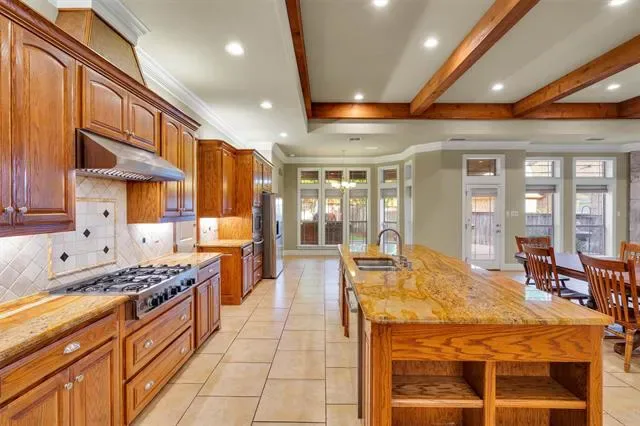 Step outside to enjoy beautifully manicured flower beds and a relaxing back patio complete with a water fountain and built-in gas grill—perfect for outdoor gatherings or quiet evenings at home.