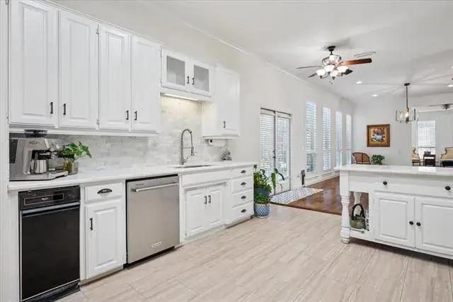 The updated kitchen boasts white cabinets, gorgeous marble countertops, and stainless steel appliances. The microwave doubles as an oven, and the island is moveable. Fresh paint and fresh carpet throughout in 2025. The home also features elegant plantation shutters throughout the downstairs. The main living area is very spacious and has a beautiful fireplace. The second living could be a gameroom, media room, or office. The formal dining could also be used as an office. The floorplan is versatile and could be used in a myriad of ways.