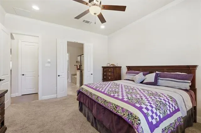 Outdoor living is just as inviting with an oversized front porch perfect for relaxing, while the covered backyard patio with ceiling fan provides ample space for outdoor seating and entertaining. A rear-entry garage enhances curb appeal and convenience.