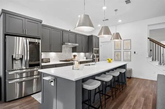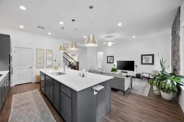 Built in 2021, this home offers contemporary construction, energy efficiency, and current design. As you arrive, it''s strong curb appeal is enhanced by over $9k in professionally designed landscaping with Texas native plants. Beyond the visual appeal, this creates the benefit of low-maintenance outdoor living, that requires no covering during winter freezes. The open floor plan is both functional and stylish, allowing you to cook, host, and gather without ever feeling disconnected. The primary suite is on the main floor, delivering a quiet retreat with a spa-inspired bathroom complete with a soaking tub and oversized shower. With 4 bedrooms, a dedicated office, a media room, and a secondary living area, this layout offers the benefit of convenience and flexibility for work, guests, or growing households. The media room and secondary living space are upstairs, making it perfect for movie nights, game days, or creating a separate entertainment zone. This separation of space gives everyone room to spread out while still staying connected. Equipped for modern living with an EV charger in the garage and solar panels, providing reduced energy costs and increased efficiency, translating to real monthly savings and long-term value. The Trimlight permanent exterior lighting along the front gives you the ability to customize colors for holidays, game days, or special occasions. These lights can even be synchronized to music, creating a dynamic, personalized display year-round without the hassle of seasonal installation. The highly desired location gives convenient access to major highways, shopping, dining, and entertainment while still enjoying a quiet, neighborhood feel. Zoned to Birdville ISD, highly-rated Walker Creek Elementary and Smithfield Middle School, known for strong academic performance and student achievement. This is more than just a home, it’s a space designed to give you flexibility, efficiency, and comfort, all in a location that continues to grow in demand.