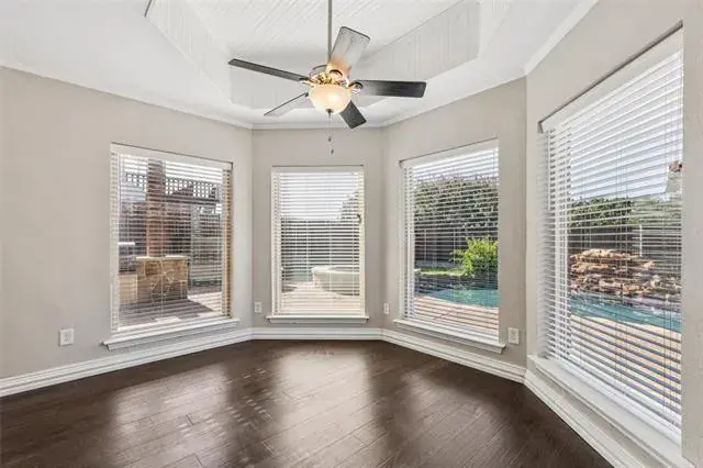 Mortgage savings may be available for buyers of this listing. Beautifully updated and freshly painted 4 bedroom, 3 bath North Richland Hills home with a sparkling heated pool and spa—ready for you to enjoy! From the moment you enter the grand foyer, you''re greeted with warmth, style, and natural light. This stunning home features modern elegance and thoughtful designer touches throughout. Entertain with ease in the formal living and dining rooms, ideal for gatherings and celebrations. The inviting family room, with a wall of large windows, offers serene views and sits at the heart of the home, seamlessly connecting to the kitchen. The bright and airy eat-in kitchen is a true showstopper, featuring a large island, built-in appliances, crisp white cabinetry, a pantry, and a cheerful breakfast nook. Whether you''re cooking for two or ten, this space is as functional as it is beautiful. The primary suite is a peaceful retreat with an ensuite bath that includes dual sinks, a jetted tub, separate shower, and a walk-in closet. Spacious secondary bedrooms provide room for everyone, and the downstairs bedroom with a full bath is perfect for guests or a private home office. Your own backyard oasis—complete with a firepit and a heated pool and spa—perfect for relaxing evenings or weekend fun. Don’t miss the breathtaking view from the balcony, offering a quiet place to unwind. RV parking is allowed off the street, behind the fence. Seller has current home warranty that will transfer to new owner. This home blends comfort, sophistication, and functionality in a fantastic North Richland Hills location. Welcome home! 3D Tour available online!