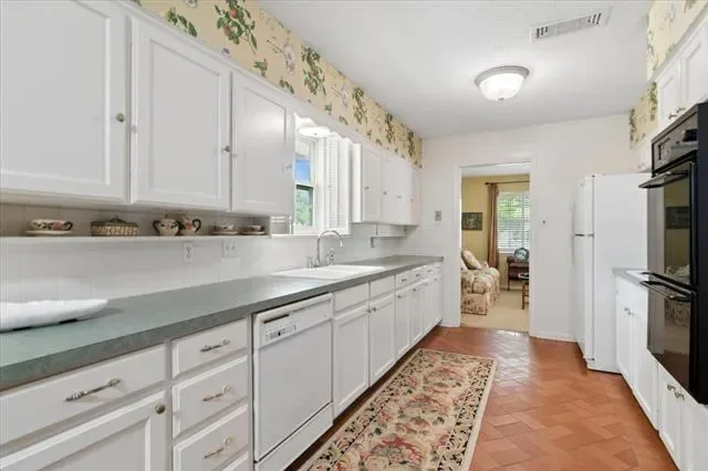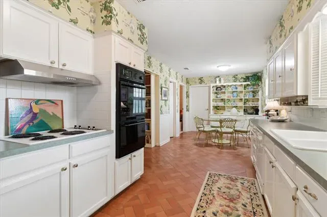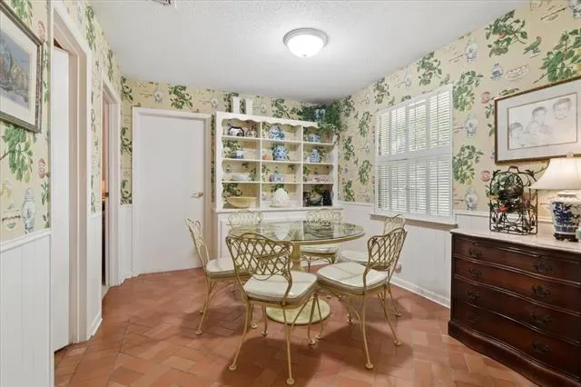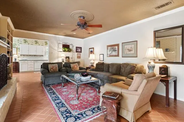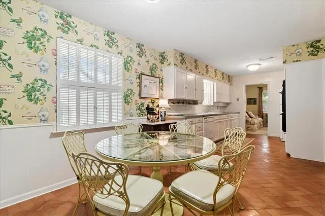 Located in the heart of Pantego, this well-maintained brick home features four bedrooms and two and a half bathrooms, providing 2,280 square feet of traditional charm. Set on a spacious lot with mature trees, the property boasts inviting curb appeal and a rear entry garage, making it both attractive and practical. The formal living-dining room combination is situated at the front of the home, offering a bright and welcoming ambiance. A bay window with plantation shutters allows natural light to fill the space, creating an ideal setting for entertaining guests. The family room is both cozy and roomy, featuring brick floors, a raised hearth fireplace with a gas starter, and a built-in bookcase. From the family room, access to the covered patio and backyard is available, enhancing indoor-outdoor living. Brick floors from the family room continue into the efficient kitchen, which flows seamlessly into a bright breakfast nook or back into the formal living-dining area. The breakfast nook includes a built-in buffet, making it perfect for morning coffee or an additional entertaining space throughout the year. Located off the breakfast nook is the fourth bedroom, a half bath, and a full-size utility area with built-in cabinets and direct access to the garage. The layout separates the primary bedroom and two secondary bedrooms on one side of the house, while the fourth bedroom and half bath are situated off the kitchen area. The spacious primary suite offers a dressing area, two closets, and an ensuite bath for added comfort and convenience. This wonderful floor plan provides endless potential and is ready to welcome new owners. The property is conveniently located near Pantego Bicentennial Park, Interstate 20, shopping, and dining, making it an ideal choice for those seeking comfort and convenience in a prime location. Don’t miss this wonderful opportunity to make this charming Pantego home your own!