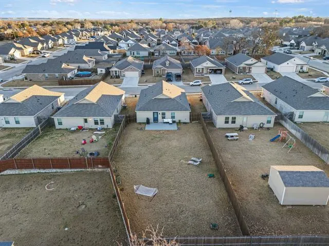 PRICE IMPROVEMENT AMAZING very well kept 3 BEDROOM 2 BATH 2 CAR GARAGE split floorplan house on wide street in quiet community, Lennar Home warranty still has 7 OF THE 10 YEAR BUILDER WARRANTY. large backyard, considered premium lot by builder. Entire property has sprinklers including the backyard. So much room to plan and dream. Room for pool, garden, workshop or shed. Includes 12 x 20 uncovered back patio. Imagine creating your own outdoor living eating and entertainment area as an extension of your home but outdoors. Nice touches throughout house include lighting, finished out garage with some decking in attic, dual sink, magnetic shower wands, outdoor decorative lighting, stone pillars and stone tree ring, small green belt directly behind house. House sq ft is 1,302 per builder and owner. Survey available but does not reflect backyard patio added in August of 2025. HOUSE WAS COMPLETED IN 2023. City of Pelican Bay offers a city beach and boat launch. Close to Eagle Mountain Lake, schools, police department, shopping and restaurants. Well maintained neighborhood with NO HOA! Buyer or Buyer agent to verify sq. ft. taxes , measurements, schools, etc. PRICED TO SELL!