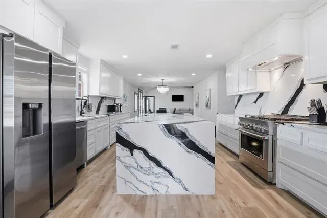 SELLER SAYS GET IT SOLD… NEW PRICE DROP – DON’T DELAY! Discover an incredible investment opportunity or a multigenerational powerhouse with this uniquely reimagined 7 bed, 3 full bath residence perfectly positioned on a sprawling corner lot of nearly half an acre in the heart of Richland Hills, where savvy investors and forward thinking buyers will recognize the rare combination of space, flexibility, and cash flow potential. Whether you are eyeing the STR market, listing on VRBO, building a long term room rental portfolio, creating a multigenerational living solution, designing a roommate setup, or bringing multiple families together to pool resources under one roof while maintaining personal space, this home delivers a high capacity layout unmatched in the area. The showstopper is the massive chef inspired kitchen at the center of the home, featuring quartz countertops, a dramatic waterfall edge island, custom cabinetry, and a professional grade 6 burner gas range, flowing into an open concept living and dining area finished with sleek modern LVP flooring throughout. Seven generously sized bedrooms and three fully modernized bathrooms are purpose built for maximizing occupancy and returns, while also offering the privacy and flexibility extended households crave, and the adaptable floor plan allows an easy conversion back to a primary suite should your exit strategy or lifestyle needs ever change. Outside, a covered back porch over 30 ft long delivers outdoor living space perfect for guest relaxation, shared gatherings, or year round entertaining. A freestanding 3rd car garage provides a readymade workshop or storage solution, and the expansive backyard can be accessed directly from the street, ideal for secure parking, future expansion, or added convenience for STR guests arriving with trailers or oversized vehicles. With luxury finishes paired with an investor optimized layout and built in versatility for evolving household dynamics, this high potential asset.