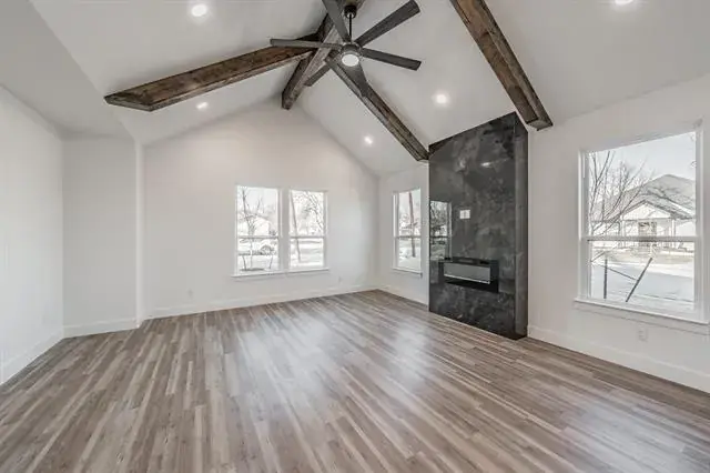 ***Multiple Offers***Step into modern luxury with this brand-new single-story home. Boasting 3 bedrooms and 2 bathrooms, this property exudes curb appeal. Upon entering, you’ll be greeted by soaring ceilings and an open-concept layout that seamlessly connects the living spaces. The main living area is a true highlight, featuring an electric fireplace, high ceilings, and a stylish tiled accent wall. The chef-inspired kitchen is a dream, with tall cabinetry, sleek quartz countertops, stainless steel appliances, a gas range, and a vented range hood. Perfectly positioned, the kitchen overlooks both the dining room and the living room, making it ideal for effortless entertaining. Retreat to the primary suite, where you’ll find another cozy electric fireplace, a spa-like bathroom with a fully tiled walk-in shower, a glass enclosure, floating vanities with quartz countertops, and a private water closet for ultimate privacy. Additional features include a completely insulated garage and garage door, as well as an electric sliding gate to drive into the garage. This home strikes the perfect balance between style and comfort. Schedule a tour today and experience it for yourself!