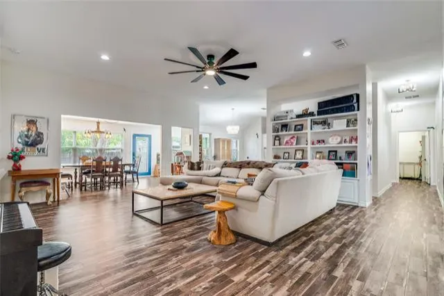 The horses of Camp Carter’s Equestrian Center will eat apples gently from your hands, riding lessons available. Less than one mile to the River District. Over 3,000 SF living space, w excessive room to expand. Wall lattice, bamboo, ivy, pecan trees, crate myrtles galore.