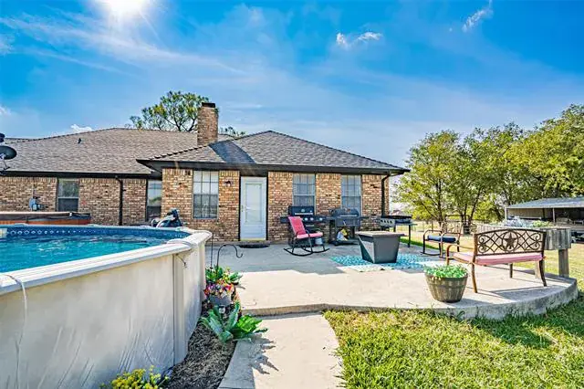 The inviting ranch-style house spans an impressive 2,698 sqft, featuring three bedrooms and 2.5 baths. Entertain guests effortlessly in the expansive living room, dining area, and modern kitchen, equipped with granite countertops throughout. The luxurious master bath boasts a full-sized jetted jacuzzi and a tiled walk-in shower with multiple shower heads for a spa-like experience. A large office at the back of the house opens up to a spacious concrete patio, where you can relax by the above-ground pool and unwind in the hot tub. Eliminate the worry of a water bill, because this house has its own water well and pump house.