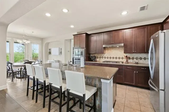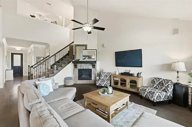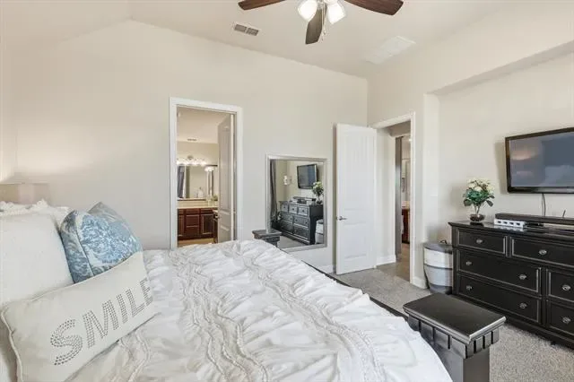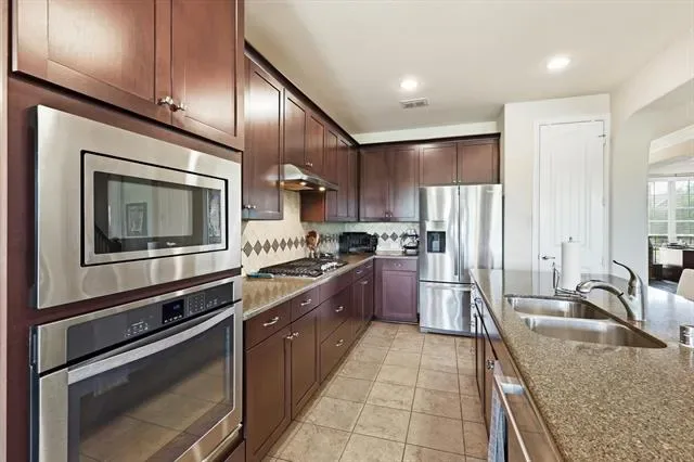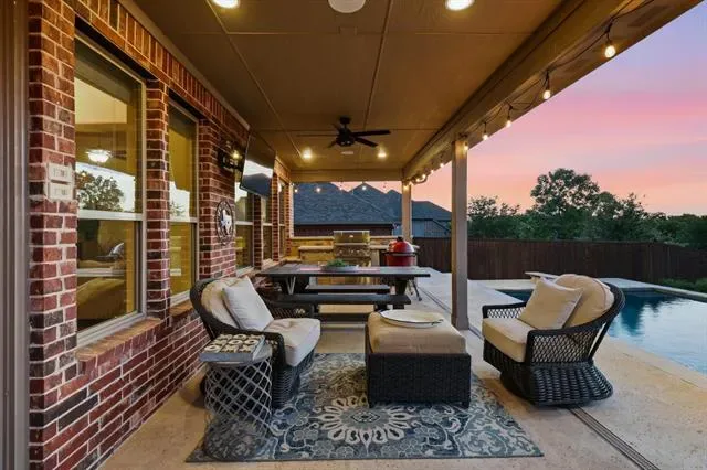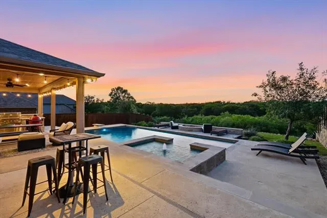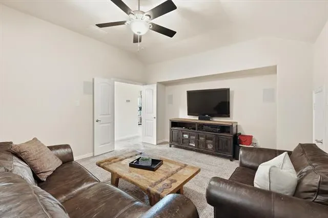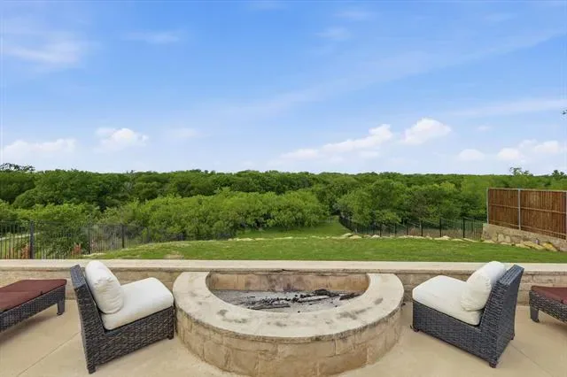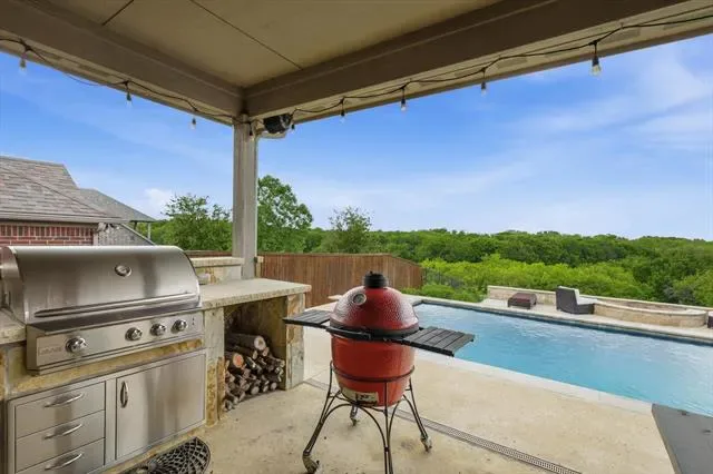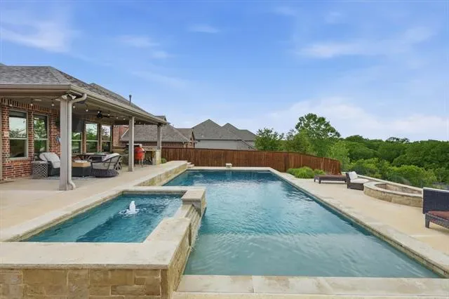Beautifully upgraded home on an oversized .42 acre cul-de-sac lot in the heart of Roanoke featuring 4 bedrooms, 3.5 bathrooms, and approximately 2,946 square feet with thoughtful custom enhancements throughout, including an epoxy-coated extended depth garage with an extra ½ space and extensive overhead storage, an oversized covered back patio complete with built-in natural gas grill, mounted TV, and ideal entertaining space, and a recently upgraded Class 4 impact-resistant roof in 2024, inside you’ll find a warm and inviting open concept layout with a stunning stone fireplace, a beautifully accented stone kitchen island, and a dedicated media room with surround sound for the ultimate movie night experience, additional upgrades include an upstairs bedroom with its own connected bathroom creating a private suite option, wired internet connections in the office, living room, media room, and primary bedroom, and built-in speakers in multiple areas including the living room, office, media room, patio, and primary bedroom for a true whole-home audio experience, the flexible floor plan offers ideal spaces for working from home, hosting guests, or everyday living, while the expansive backyard provides endless opportunities to create your dream outdoor oasis, all perfectly situated just minutes from dining, shopping, major highways, and highly rated Northwest ISD schools in a quiet, low-traffic setting that blends convenience with privacy.