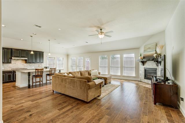 LOVELY! This gently lived in one story almost feels like new! Fantastic floorplan creates a wow factor the minute you walk in. So open, with kitchen opening to Texas sized family room, and open dining areas, making for a perfect entertaining environment. Primary bedroom is tucked away in its own wing, perfect for privacy! 8 Foot doors and engineered wood floors provide that extra touch of high quality that the most discerning of buyers is sure to appreciate. And the kitchen, wow, what a cook’s dream! Take a look at the abundance of counterspace, oversized island, stainless steel double ovens, 36 inch cooktop, and menu planning center! Located in a sought after neighborhood with great schools, this gorgous home is easily accessible to all the shopping and convenient to highways for easily getting around in city. Come see this one!