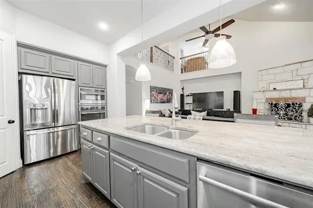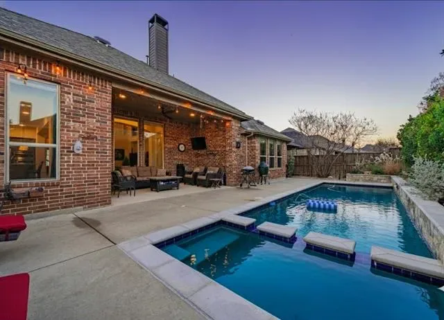 Outdoor living is equally impressive. Enjoy the beautifully designed backyard featuring a covered patio with a TV mount and overhead fan, custom-designed pool and spa elevate the space, complete with a high-efficiency heater, integrated saltwater and chlorine system, stonework and a serene water feature. The seller is willing to negotiate some furniture. Located in the highly desirable Fairway Ranch community, residents enjoy exceptional amenities including a community pool, clubhouse, jogging trails, playgrounds, fishing ponds, and scenic greenbelts. All of this is situated within the award-winning. Please take a moment to explore the floor plans, 3D tour, and video provided.