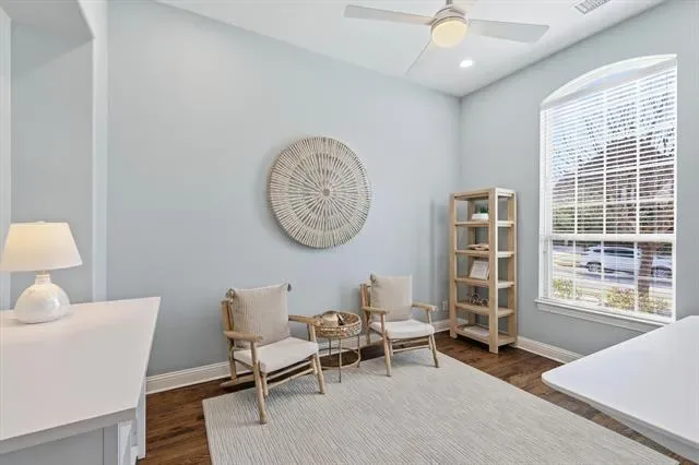 Located in a sought-after Fairway Ranch and the Northwest ISD with Cox Elementary right in the neighborhood, this desirable single-story floor plan offers privacy, function, and thoughtful design throughout. Each of the three spacious bedrooms features its own bath, plus a convenient powder bath for guests. Solid hardwood floors run through the main living areas, complemented by custom lighting and a striking stone gas fireplace that anchors the living room. A dedicated office provides a quiet workspace, while the large, fully equipped media room is ready for movie nights or game days at home. The kitchen flows seamlessly into the main living space, creating an ideal layout for gathering. Step outside to the covered patio with a built-in grill' perfect for year-round entertaining. The fenced backyard offers space for pets or play. Additional highlights include an oversized garage with epoxy floor, generous storage, floored attic, recently stained fence, newer roof and air conditioning unit. Residents enjoy access to a resort-style community pool, jogging trails, playgrounds, and catch-and-release ponds. Conveniently located near shopping, dining, and major commuting routes, this home combines everyday comfort with community amenities in one of Roanoke’s most desirable settings.