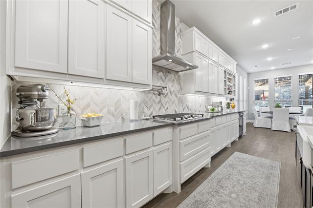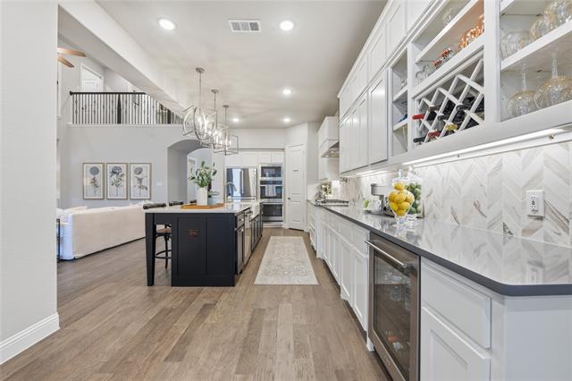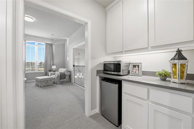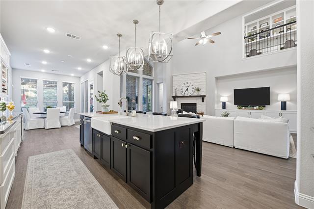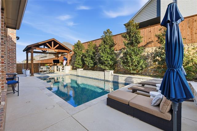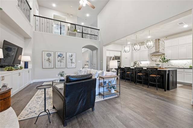 Experience pure luxury in this high-end Highland Home boasting a resort-style backyard retreat, perfectly positioned across from a picturesque pond. Sophistication meets comfort with extensive wood flooring, recently installed carpet, 8-foot solid core doors downstairs, and soaring ceilings punctuated by signature arched windows that flood the home with natural light. In the family room, the impressive stone fireplace and custom built-ins create a warm focal point for gatherings. A chef’s dream, the extended kitchen offers quartz countertops, stainless appliances, a smart double oven, 5-burner gas cooktop, farm sink, huge walk-in pantry, beverage cooler, and a pot filler. Retreat to the private primary suite featuring a dual-sink quartz vanity plus a separate makeup area, a freestanding tub, oversized shower, and a massive walk-in closet with direct access to the laundry room. The functional floor plan includes a home office with a wall of built-ins and a secondary bedroom with a full bath, all conveniently located on the first level. Upstairs, enjoy a spacious game room with a snack bar and a half bath, a media room pre-wired for surround sound, a built-in study center, and oversized bedrooms with ensuite baths. Your backyard paradise awaits with a saltwater pool built by Gohlke Pools and two distinct outdoor living spaces: a covered patio with two-story ceilings and a fireplace, plus a large pergola-covered patio showcasing a beverage cooler and ambient string lighting. Other features include a tandem 3-car garage with epoxy flooring and a recently replaced roof. Enjoy the premium lifestyle and low tax rate of Fairway Ranch, which features a community pool, dog park, playground, catch-and-release fishing pond, picnic areas, and scenic trails for year-round recreation. Attends highly sought-after Byron Nelson High School. Take a first-person look at this gorgeous home! Click the Virtual Tour link to see the 3D Tour!