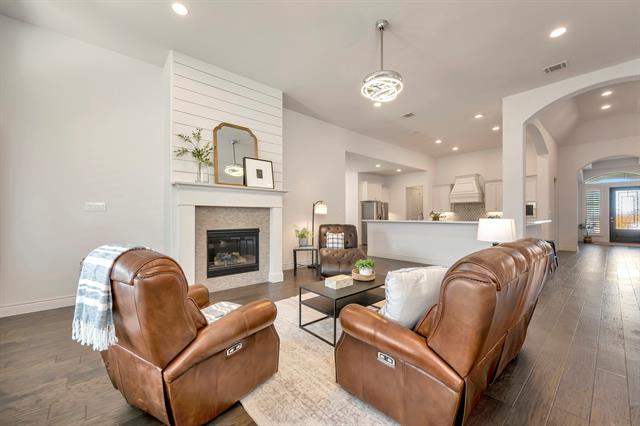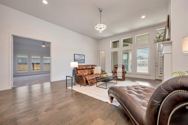 Beautiful one-story Perry Home that is truly move-in ready! This thoughtfully designed open floor plan offers 4 spacious bedrooms and 4 full bathrooms, providing both comfort and functionality for everyday living and entertaining. The upgraded stone elevation creates stunning curb appeal, while the interior features light-filled living spaces that flow seamlessly from the kitchen to the family room. The upgraded kitchen comes complete with refrigerator, making this home truly turnkey for the next owner. Step outside to enjoy the oversized covered back patio, perfect for relaxing or hosting gatherings, all overlooking a large lot with plenty of room for outdoor living. Ideally located within walking distance to the popular Oak Street area and situated in highly sought-after Northwest ISD, this home offers the perfect combination of quality construction, convenience, and location.