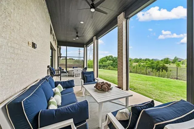 Large lot with huge backyard overlooking the bluff in Fairway Ranch! Excellent floor plan all on a single level with dedicated office, dual dining rooms and media room. Spacious living room with stone fireplace is full of natural light from the floor to ceiling windows & slider providing easy access to the outdoor patio. Bedrooms are privately separated between kids’ rooms & guest room. The kitchen features abundant counter space finished in quartz with a gas range, dual ovens and large single basin stainless steel apron sink. Custom window treatments throughout with remote control shades in the primary bedroom suite & living room. Great style throughout with light, bright interiors and neutral finishes!