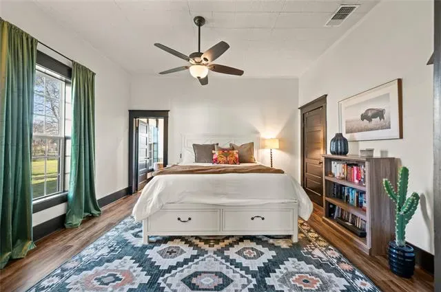 Inside, original architectural details blend seamlessly with today’s comforts. Gorgeous woodwork, rich trim, and original pocket doors allow you to separate the living spaces while preserving the home’s historic integrity. The elegant sliding doors not only showcase authentic craftsmanship but also offer flexible living' open for an airy flow or closed for privacy. This 2 Bedroom home has been thoughtfully updated with modern amenities that offer contemporary living, including an updated kitchen and bath, new windows and flooring, paint, new siding, driveway, and Roof was replaced in 2021. Spacious backyard offers a large 12×13 storage shed and plenty of yard space. Located in a highly desirable, walkable downtown area you’re just steps from local Shops, Restaurants, Entertainment, Parks, and community events' enjoying both neighborhood charm and everyday convenience with easy access to major freeways. Don''t miss this opportunity to own a piece of history!