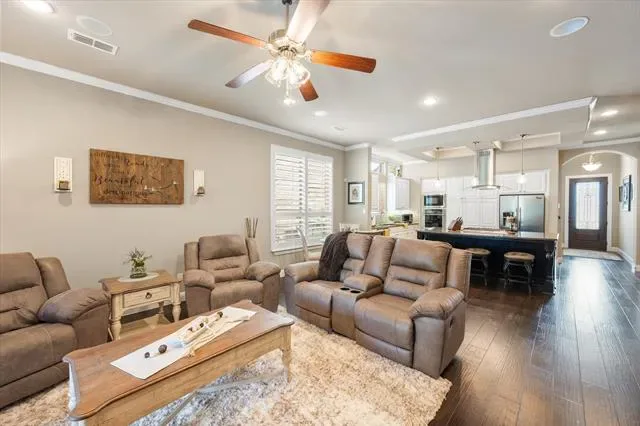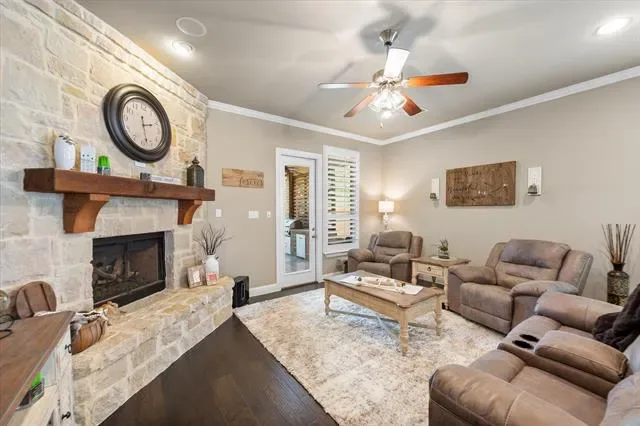 Welcome to 1864 Halifax Street in Roanoke, Texas, located within a private gated community in the highly sought-after Northwest ISD. This beautifully maintained home offers the perfect blend of luxury, functionality, and location, featuring 4 bedrooms, 3 bathrooms, and over 2,600 square feet of thoughtfully designed living space. From the moment you step inside, you’ll notice elevated architectural details including tray ceilings, crown moulding, and plantation shutters throughout that add timeless charm. The open-concept kitchen is a true focal point, offering abundant cabinetry, expansive countertop space, and seamless flow into the main living area. It''s perfect for entertaining or everyday living. The living room features built-in surround sound, with additional audio extending to the media room and outdoor patio. A central vacuum system and reverse osmosis water system provide convenience and efficiency, while the radiant barrier helps keep utility costs reasonable year-round. Step outside to a private backyard retreat designed for relaxation and hosting, complete with an extended travertine patio, built-in fire pit, and outdoor kitchen. With no rear neighbors and mature trees, this space offers exceptional privacy. The upstairs layout is ideal for guests or multi-generational living, featuring a media and game room with wet bar, along with a private bedroom and full bathroom. The roof was replaced in 2025. Located just minutes from DFW International Airport, Southlake Town Square, Alliance Town Center, and downtown Roanoke – known as the “Unique Dining Capital of Texas”. This home offers unmatched convenience. Homes in this gated neighborhood do not stay on the market long, so schedule your private showing today before this opportunity is gone!