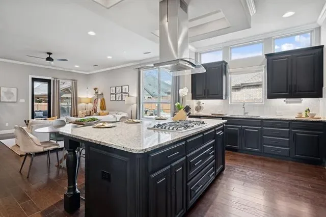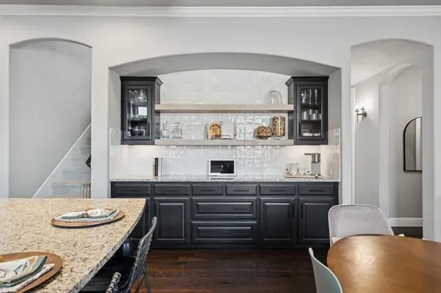 Built-in Features, Decorative Lighting, Double Vanity, Dry Bar, Eat-in Kitchen, Granite Counters, Kitchen Island, Open Floorplan, Walk- In Closet(s)