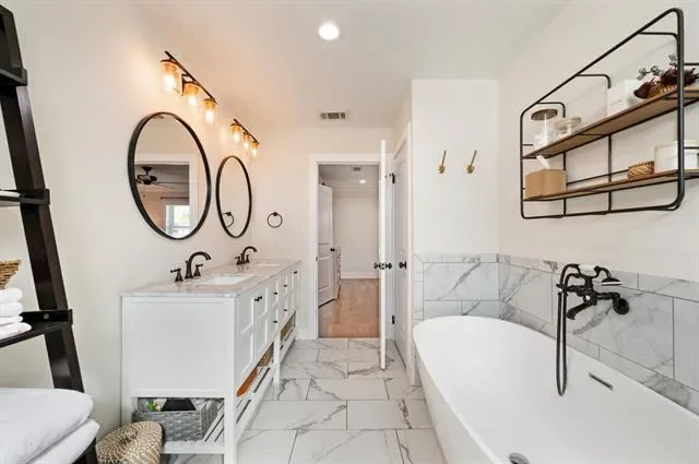 Welcome to this beautiful modernized ranch-style home, perfectly situated on over a third of an acre, in one of the area’s most desirable towns' Roanoke, the Unique Dining Capitol of Texas. Home Remodeled with new addition completed in Feb. 2019. This home features 4 bedrooms, 4 bathrooms and combines classic charm with contemporary elegance for the ultimate in comfortable living. Step inside to discover a thoughtfully updated interior with light-filled living spaces and an open-concept layout ideal for entertaining. The large kitchen flows seamlessly into the living and dining area, making it perfect for both everyday life and special gatherings. There is also a second dining space with a built in island that offers plenty of room for bar stools. Venture outdoors to experience resort-style living at its finest. Host unforgettable get-togethers in the outdoor kitchen, relax in the sparkling heated pool, roast marshmalows in the built in fire-pit, or celebrate in the expansive party barn—ideal for everything from milestone events to casual evenings with friends. The Party barn offers an additional 550 square feet of lounge and entertaining space. House also has built in LED Christmas lights with multiple color options. Enjoy the convenience of a walkable lifestyle, with popular restaurants and live entertainment just steps from your front door. This property offers the rare combination of modern amenities, generous outdoor living, and unbeatable location—don’t miss the opportunity to make it yours just in time for pool season!