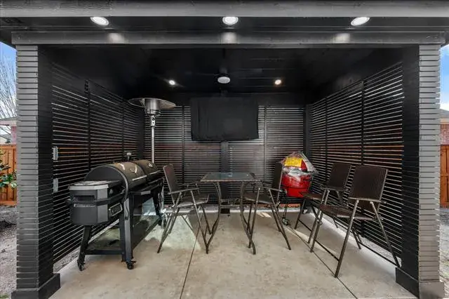 Awning(s), Covered Patio/Porch, Rain Gutters, Lighting, Storage