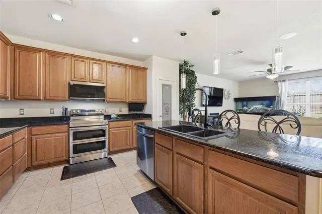 MOTIVATED SELLERS! Sellers offering carpet allowance and 1-yr Home Warranty from American Home Shield! This spacious 3 beds, 3 full baths home offers lush landscaping, a private office, two dining areas, downstairs master suite, and huge upstairs gameroom. The kitchen features granite countertops, ample storage, brand new Samsung stainless appliances, and a large kitchen island that opens to the living room and breakfast area. Updates include freshly painted interior walls, oversized gutters with lifetime warranty, roof, built-in speaker system in game room, modern light fixtures, Z-wave light switches, hard wired cameras, and more! Neighborhood offers a community pool, parks, and scenic trails. Conveniently located near 820, 35W, Saginaw Switchyard, Alliance Town Center, Stockyards and Downtown Fort Worth. Schedule your showing today!
