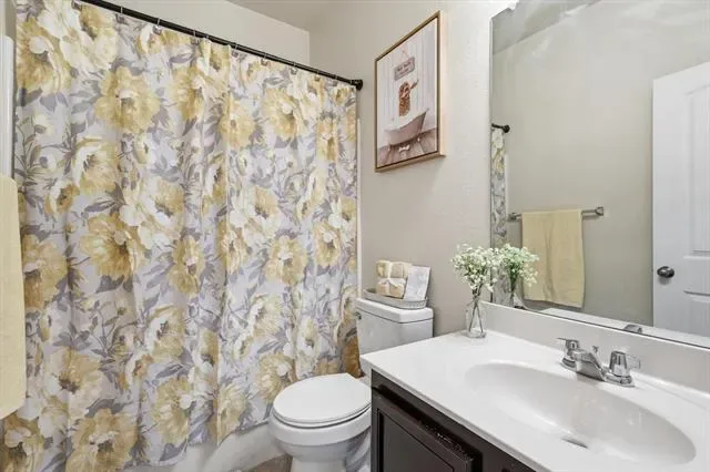 IMMACULATE 3-bedroom, 3 full-bath home! Offering thoughtful design and modern upgrades throughout. Enjoy mornings on the covered front porch before stepping inside to a light-filled study with French doors facing the front of the home, ideal for working from home or a quiet retreat. The main level features two bedrooms, including a private full bath, with the spacious primary suite tucked at the end of the home for added privacy. The primary bedroom boasts vaulted ceilings and a decorative ceiling light with color-changing and Bluetooth features, creating a relaxing, customizable atmosphere. The ensuite bath is your personal retreat with a walk-in shower and soaking tub. Designed for both everyday living and entertaining, the home offers two dining spaces, formal and informal, alongside a spacious open-concept living room. The large kitchen island, granite countertops, and new flooring and fresh paint throughout elevate the space with a clean, modern feel. Upstairs, you’ll find a second living area, perfect for a game room or media space, along with a private bedroom and full bath, ideal for guests or multigenerational living. Additional highlights include solar panels providing built-in energy savings. The irrigation system features new sprinkler heads and a Wi-Fi compatible controller, allowing the system to be conveniently managed and adjusted directly from your smartphone. Plus access to community amenities such as a pool, parks, and walking trails. All of this in a conveniently located neighborhood close to shopping, dining, and everyday essentials. This home truly has it all! Style, space, and smart living!