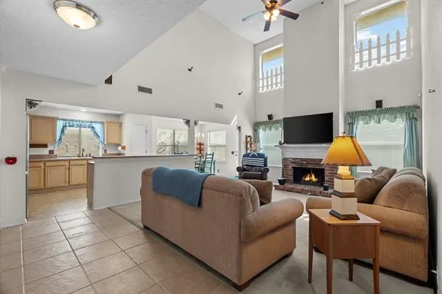 Step into this inviting 4-bedroom, 2-bath home featuring a bright, open layout and soaring ceilings that create an airy, welcoming atmosphere. The large living area offers a cozy fireplace and plenty of natural light, making it the perfect place to relax or entertain.
