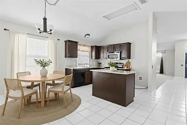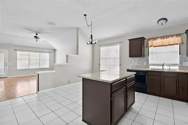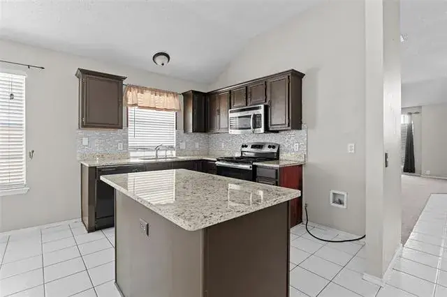Step into this inviting three-bedroom home in the highly regarded Eagle Mountain ISD, offering a smart layout and plenty of charm. The spacious formal living and dining area welcomes you in and flows effortlessly into the kitchen and main living space. The kitchen features updated stainless steel appliances, a sleek full backsplash, a center island with breakfast bar seating, and a clear view of the casual dining area.