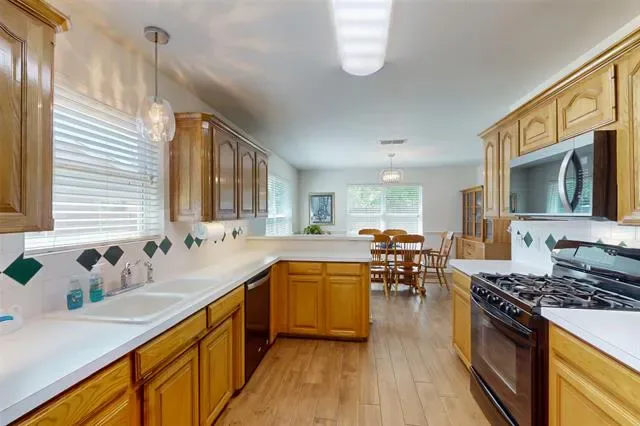 This three-bedroom, two-bathroom home in Saginaw is EXCEPTIONALLY WELL-MAINTAINED! Centrally located in the city of Saginaw near Willow Creek Park, enjoy the benefits of Saginaw residency and the convenience of nearby Fort Worth! The owner’s suite with ensuite bathroom features a dual sink storage vanity, TWO walk-in closets, a separate shower and a garden tub. Split bedrooms, custom built-ins, lots of closet space, PLUS an 11’X15 workshop with electricity in the backyard. Mature trees and vibrant landscaping with full sprinkler system makes this a gardener’s paradise. Zoned for Eagle Mountain-Saginaw ISD, and NO HOA!