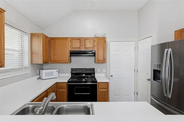 This charming 3-2-2 in desirable Parkwest Addition offers approx. 1,402 sq. ft. The open floor plan is thoughtfully laid out inviting a flow between living, dining, kitchen and bedrooms. The living area has a cozy woodburning fireplace which adds warmth and character. It offers split bedrooms with the primary suite off to itself for privacy. The backyard is spacious, has an open patio for entertaining or relaxing, and there are no neighbors behind the property. It is conveniently located for easy access to shopping and freeways. Hurry and make this inviting home yours!!