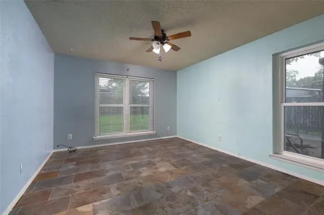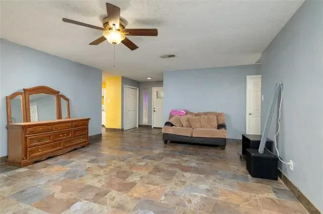 Welcome to 400 Indian Crest Drive in Saginaw! This spacious single-story home sits on a beautiful lot surrounded by mature trees, offering plenty of shade, privacy, and outdoor space to enjoy. Inside, you’ll find a flexible floor plan with spacious living room featuring a fireplace, tile flooring throughout much of the home, and several rooms that can be used as bedrooms, an office space, hobby rooms, or additional living areas depending on your needs. The kitchen features white cabinetry, generous counter space, a bright dining area, and easy access to the backyard patio. Both bathrooms include custom tile work, with one offering a walk-in shower and the other featuring a tub-shower combination.
