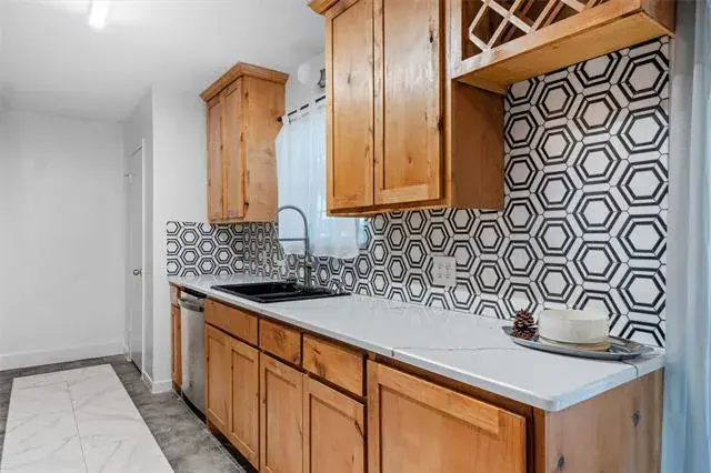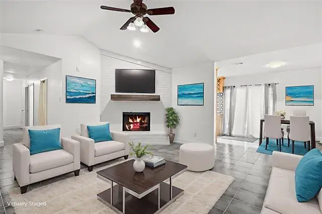 Come see this beautifully updated home in Saginaw! Step inside to find new tile flooring, vaulted ceilings, and a nice wood-burning fireplace! The living room flows seamlessly into the dining area and kitchen. The kitchen has been updated and features new quartz countertops, stainless steel appliances, and a beautiful backsplash. All the bedrooms have new carpet! The primary bedroom features a sliding door for backyard access! Both the primary and hall bathroom have been fully updated. There have been several additional upgrades to give the new homeowner peace of mind. This includes new windows and doors in 24′, new electrical panels upgraded in 24′, new HVAC in 23′, and a new roof in 22′! The garage was converted so you have a large bonus flex room to enjoy more living space. Step outside and enjoy the huge backyard on this large lot that is almost a quarter of an acre! All of this on a quiet cul-de-sac street. It’s a short walk to the elementary and middle school. Quick access to I-820, I-35, Eagle Mountain lake, and downtown Fort Worth!