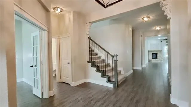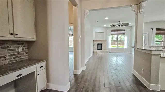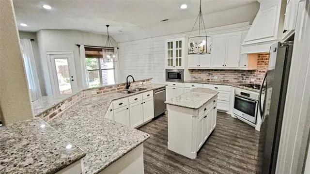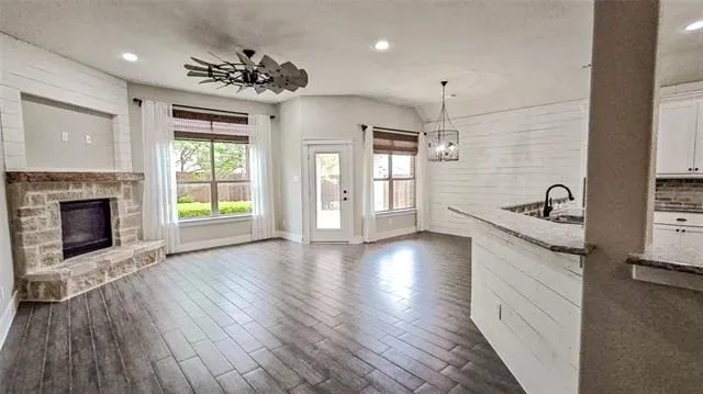 Tucked on a quiet cul-de-sac in Saginaw Springs, this 2015 Lillian Custom Home stands out with a striking brick &' stone elevation, exposed timber accents, &' custom barn-style garage doors. Inside, the bright, open kitchen features white cabinetry, brick backsplash, granite countertops, a large island, pendant lighting, &' a true walk-in pantry, all flowing seamlessly into the main living area with a stone fireplace. A dedicated study at the front offers the perfect home office or flex space. The primary suite is downstairs with dual vanities, soaking tub, separate shower, &' a spacious walk-in closet. Upstairs delivers exceptional flexibility with a massive second living area, 3 additional bedrooms, &' a private en-suite bath—ideal for guests, teens, or multi-generational living. The powder bath &' upstairs bath add character with thoughtful finishes that set this home apart. The backyard is built for both relaxing &' entertaining with a flagstone patio, custom pergola, stepping stone path, &' mature landscaping. The tandem 3-car garage is currently configured as a 2-car with a separate air-conditioned storage room, but can easily be converted back to a full 3-car setup if desired. Offering over 3,000 SF, 4 bedrooms, &' 3.5 baths in Eagle Mountain-Saginaw ISD, this home is well-positioned within one of the area’s most desirable neighborhoods.