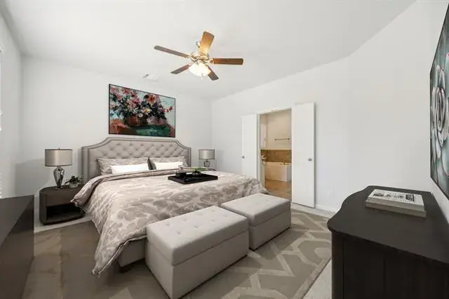 Primary Retreat: Private ensuite featuring a soaking tub, separate shower, dual vanities, and a massive walk-in closet.