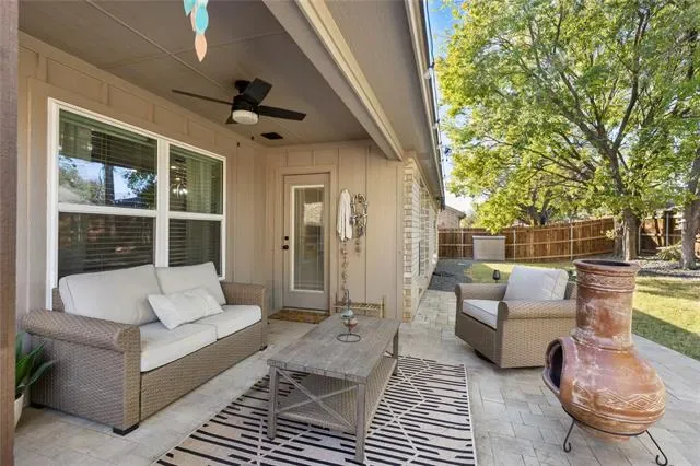 Modern farmhouse-style home in the desirable Willow Vista Estates community featuring over $35,000 in upgrades, including an extended patio, upgraded landscaping with French drain, new sod, improved lighting, new flooring, cabinet hardware, and added attic decking for storage. The open-concept kitchen offers custom cabinetry and flows into the living and dining areas, with a pocket office off the foyer. The primary suite features a walk-in shower and a spacious closet with direct access to the utility room, while secondary bedrooms share a Jack-and-Jill bath. Enjoy access to the community pool and expansive parks just across the street with walking trails, sports courts, and nearby dog parks. Located in Eagle Mountain–Saginaw ISD and close to shopping and dining.