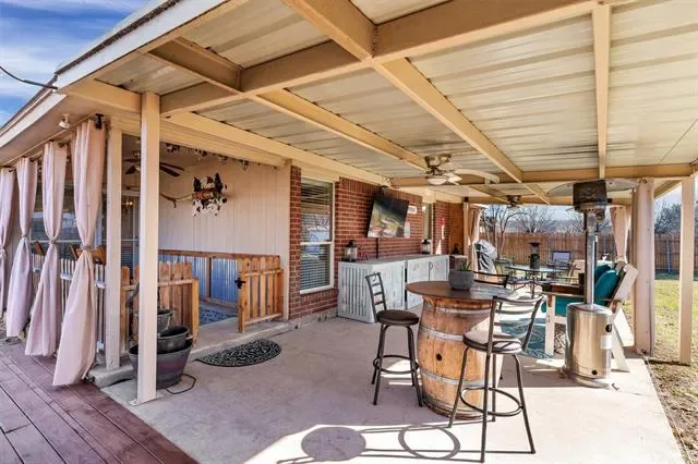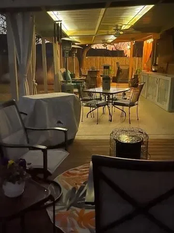 Step outdoors to an entertainer’s retreat. The oversized covered patio with extended deck creates layered outdoor living spaces, enhanced by custom handmade furniture and winter curtains for year-round comfort. Whether hosting gatherings under the stars or enjoying quiet mornings with coffee, this space was designed to elevate daily living.