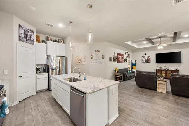 Welcome home to Willow Vista Estates in the heart of Saginaw — where small-town charm meets modern living! Nestled within the highly sought-after Eagle Mountain Saginaw ISD, this stunning 2024 McBee Homes build offers the perfect blend of quality craftsmanship and thoughtful design.