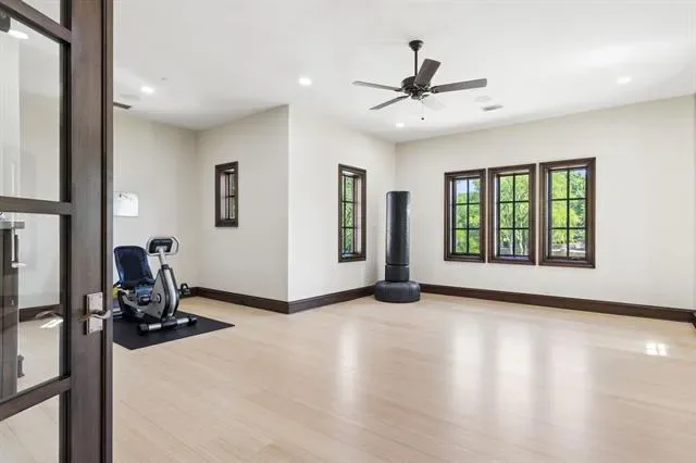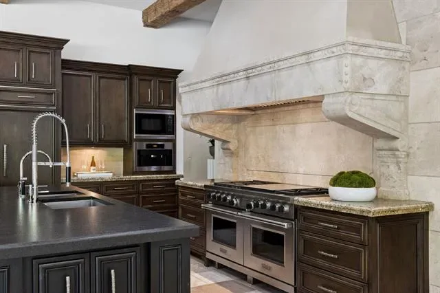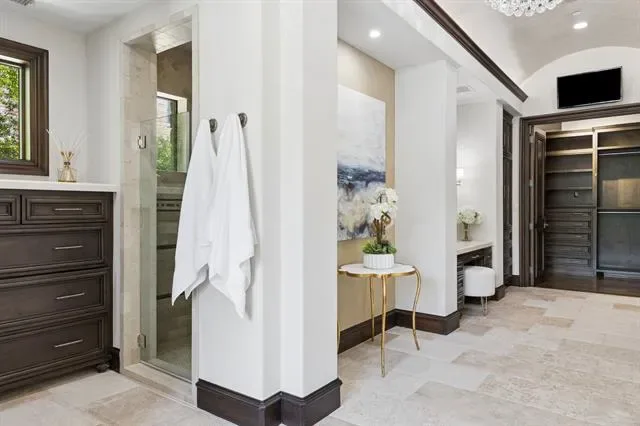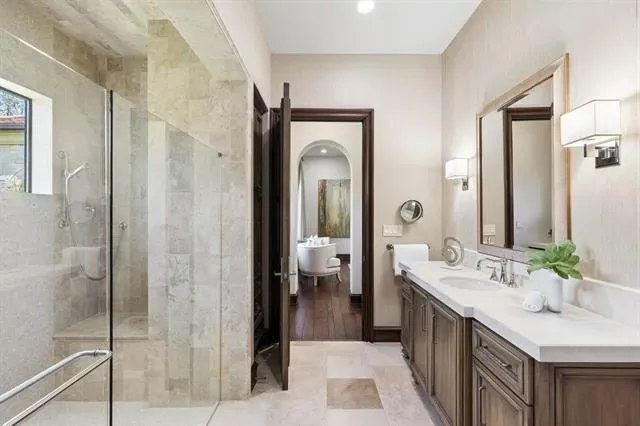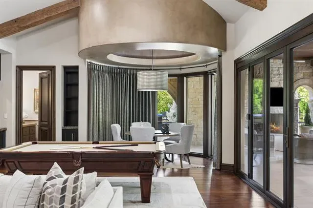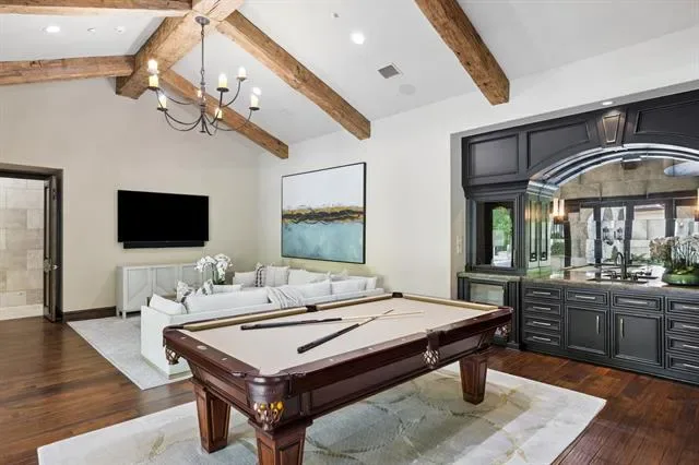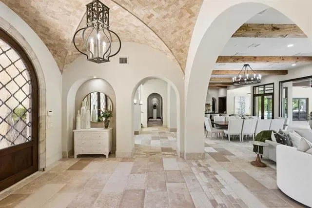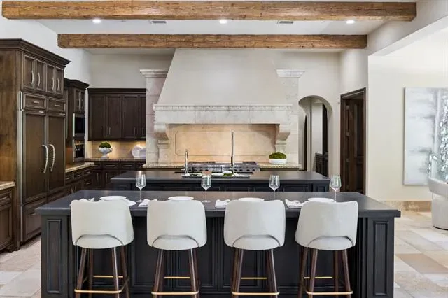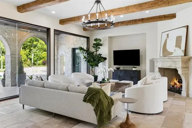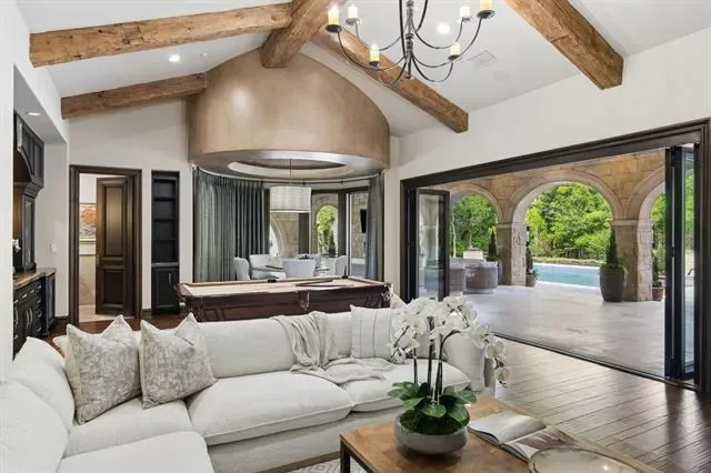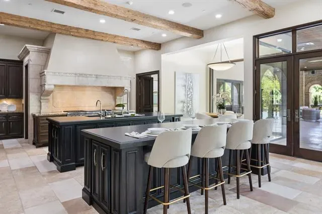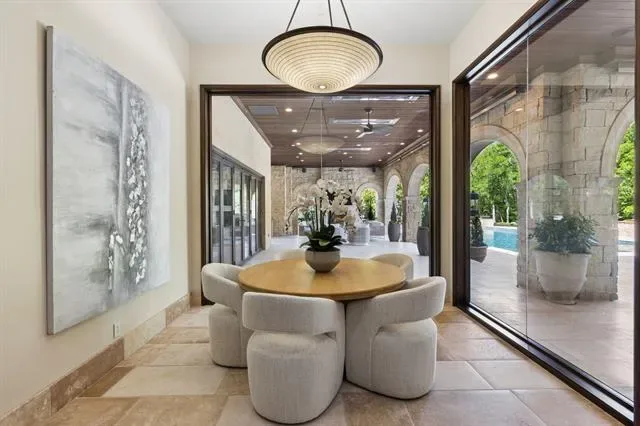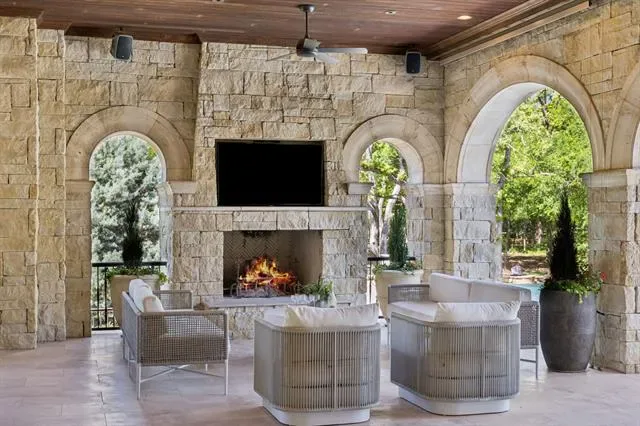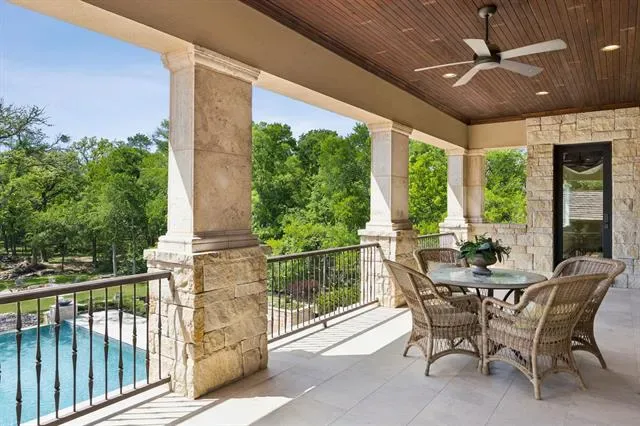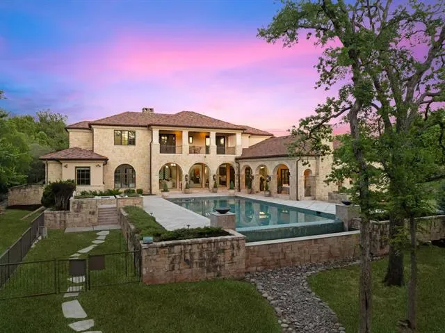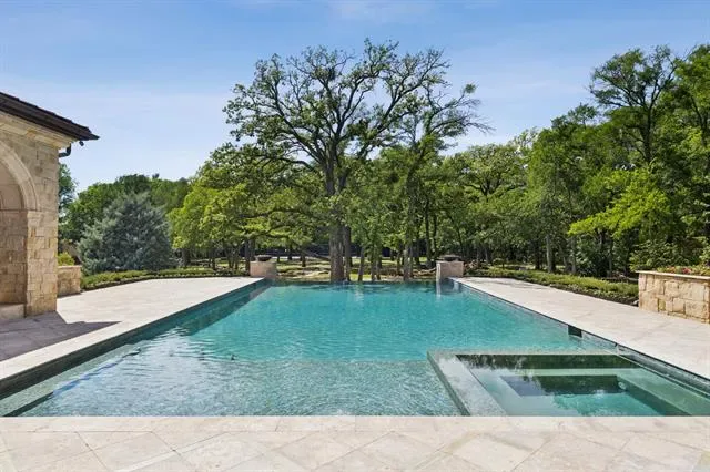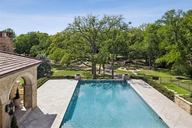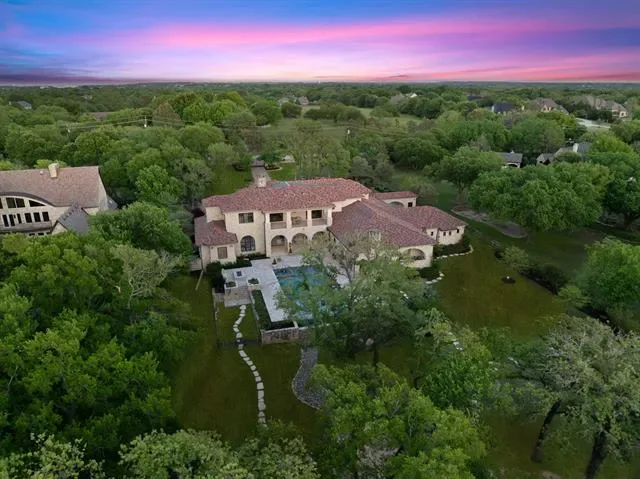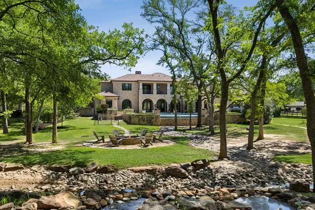 Stunning timeless Mediterranean estate, masterfully designed &' built by Jauregui Architect &' Builder. Pristinely set on almost 3 private, tree-filled acres, this estate combines the peaceful tranquility of mature native oaks, a babbling creek, natural areas &' mature landscaping. Enter through the grand double iron gate to a paver-lined drive + circular motor court centered by a dramatic fountain. Once inside you are greeted with a perfect blend of classic craftsmanship &' modern luxury, boasting extensive natural stone, gorgeous custom millwork, exceptional floor plan with curated highest-end finishes. The breathtaking Great room boasts a custom stone fireplace, wood-beamed ceilings, floor-to-ceiling Glass Windows capturing views of Outdoor Living &' acreage beyond. The Chef’s Kitchen offers double island layout, Wolf double range w ovens, double full-size Sub-Zero refrigeration w two freezer drawers, Butler’s Pantry + walk-in Pantry. Designed for both everyday living and entertaining, the 1st level offers multiple living areas including a spacious Game Room, fully equipped Bar, billiards area &' game alcove with wall of doors that open to patio + a private executive Study with detailed wainscoting. Retreat from the day to the beautiful Primary overlooking the pool &' backyard oasis beyond, with an expansive spa Bath. Spacious, private Guest suite is also down. Upstairs you find 3 Bedrooms suites, Game Room, shared covered balcony, 23''x 23'' Fitness room, large storage room ideal for craft or wrapping. The resort-style Outdoor patio spans over 1,400 square feet of covered living, complete with custom fireplace, fully-equipped outdoor kitchen w dual Big Green Eggs, gas grill, bev fridge &' built in screens + more. Sparkling infinity-edge pool, spa, multiple fire features, walking paths, private water well, and Tennis Court at rear of the property completes this idyllic resort backyard. Located minutes from DFW Airport &' Southlake Town Square. This is truly a Rare find!!!