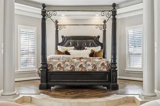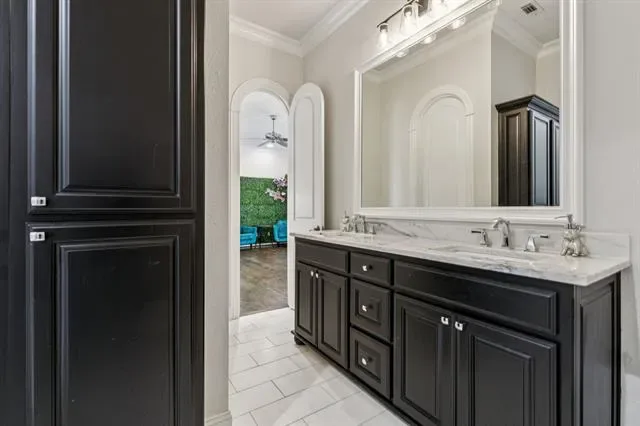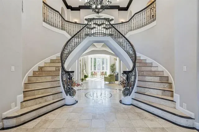 LOCATION, LOCATION, LOCATION! Welcome home to 351 S White Chapel, a private gated estate, located on Southlake’s prestigious White Chapel Boulevard. This architectural masterpiece blends classic grandeur with exquisite craftsmanship featuring 6 bedrooms and 6.4 bathrooms. A grande double staircase with soaring ceilings welcomes you into this stunning estate. The curved staircases are adorned with custom wrought iron railings and travertine stone accented with black marble inlay. The formal living room showcases an expansive cast stone gas fireplace, coffered ceilings, and an abundance of natural light. The gourmet kitchen features a Sub-Zero refrigerator, Viking professional range and gorgeous custom cabinetry. The first floor includes a private study, media room, billiards room with full bar, a gym, indoor basketball court and private guest suite! A palatial primary bedroom boasts a cast stone fireplace, private sitting area, dry bar, spa-like ensuite, and custom walk-in closet with lighted built-in cabinetry! Take the elevator upstairs to find 4 bedrooms with ensuite baths and a large living area or gameroom. Outside, resort-style amenities await: negative-edge pool with cascading waters, fire pit, championship sports court, and covered terrace with stone fireplace and Viking outdoor kitchen. Experience the perfect blend of comfort, elegance and lifestyle conveniences. Welcome to your dream home! CISD.
