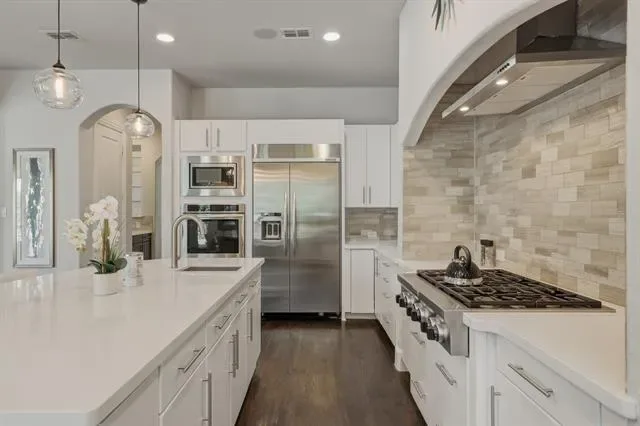 JUST REFRESHED! Kitchen cabinets painted white! Desirable Carillon Estates, located within the highly regarded Carroll ISD. Check out the unique features of the temperature controlled wine room and backyard covered patio with outdoor kitchen! The masterpiece blends luxury with a keen attention to detail. Featuring 4 bedrooms, 3.5 bathrooms, and a dedicated office space, the layout is both stylish and functional. The home showcases a dramatic two-story family room with a cozy fireplace, a spacious open kitchen with a central island, and a bright breakfast nook that opens effortlessly to the covered patio. The backyard is a secluded retreat, complete with a sparkling pool, relaxing spa, fully-equipped outdoor kitchen, and an inviting fireplace—perfect for entertaining friends and family. Enjoy year-round comfort with the addition of a heater and sun shades. Inside, a newly added temperature-controlled wine room brings a touch of sophistication. The first floor is wired for Sonos sound, making it ideal for entertaining. Designed with energy efficiency in mind, the home features spray foam insulation, Energy Star appliances, smart thermostats, Low-E2 vinyl windows, and a SEER 15+ HVAC system, ensuring comfort and savings. Carillon Estates is renowned for its luxury amenities, including beautiful parks, playgrounds, wooded trails, a catch-and-release fishing lake, and a community pool. Don''t miss the chance to call this remarkable property your own—schedule a private tour and experience its elegance and comfort today!